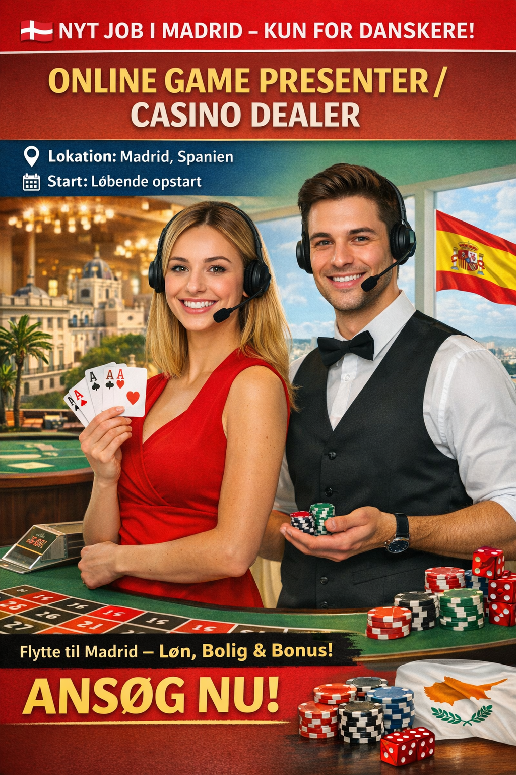 🎲 Online Game Presenter / Casino Dealer 📍 Lokation: Madrid, Spanien 📅 Start: Løbende opstart