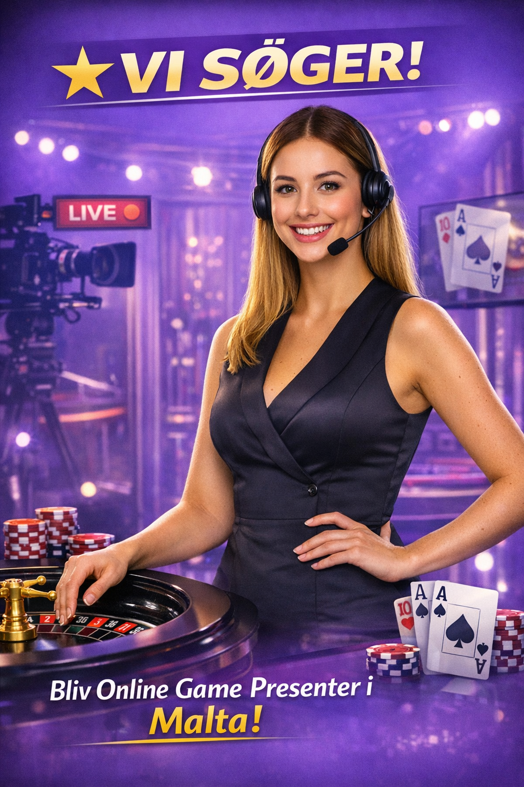 Vil du arbejde foran kamera og præsentere live casino spil som Blackjack, Poker og Roulette? Vi søger udadvendte og servicemindede danskere, der vil være en del af et internationalt team i solrige Malta!