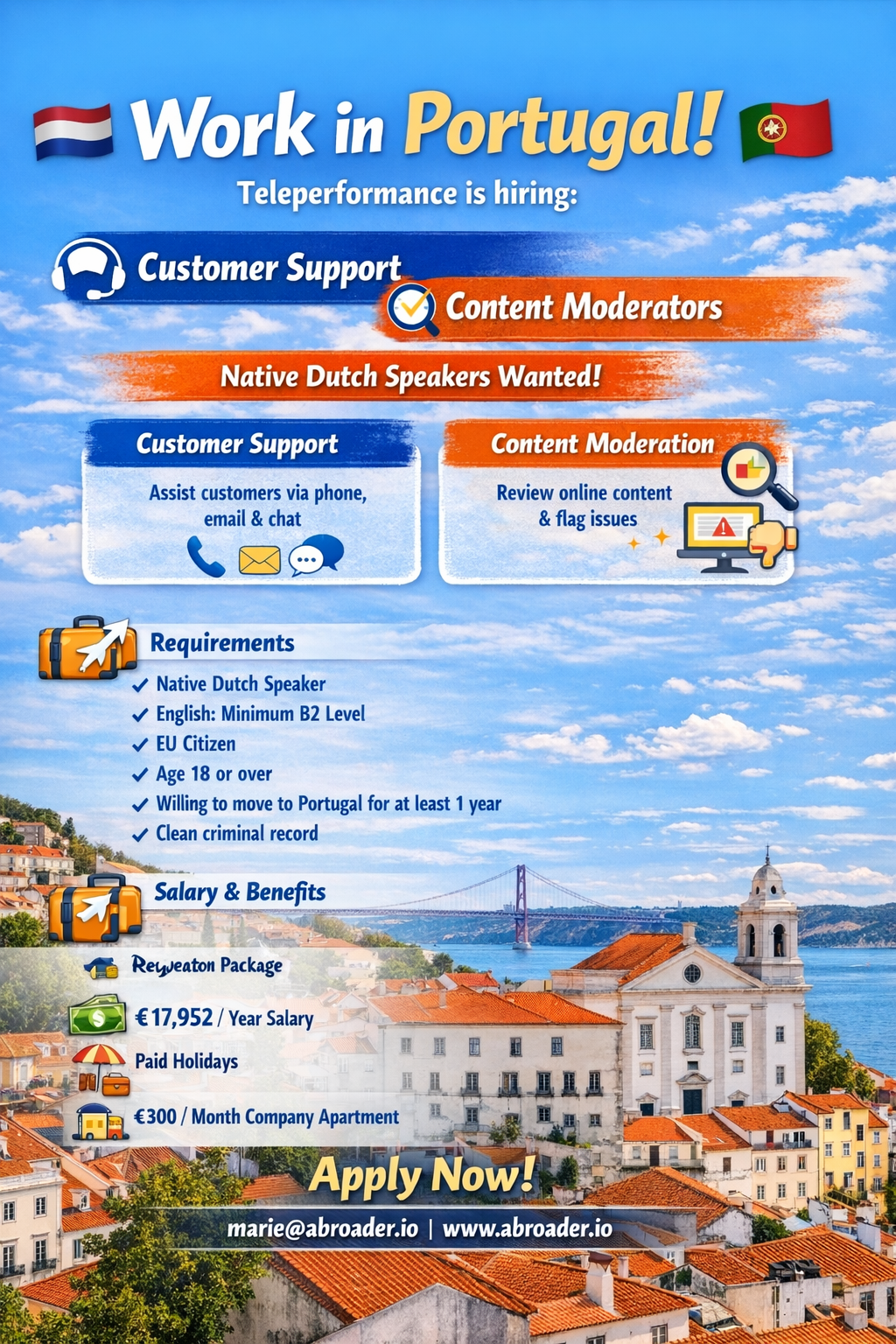 Teleperformance is one of the world's largest customer service companies, working with global brands such as Google, Microsoft, Netflix, Apple, Philips and many more. They are now looking for new team members for their offices in Portugal!