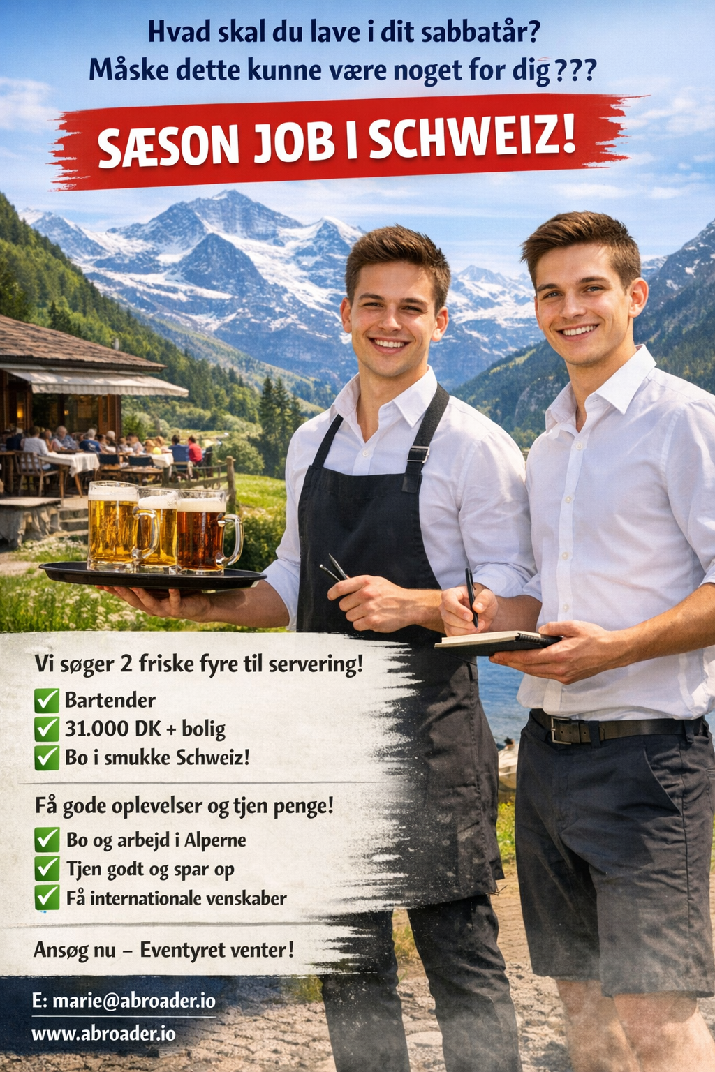 Drømmer du om at arbejde i de smukke schweiziske alper ? Så er chancen her altså nu.Vi søger: